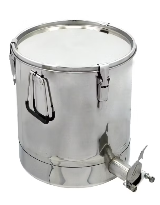 Der hochwertige Abfüller 35 kg Profi Line überzeugt durch sein durchdachtes Schrägboden-Design, das einen vollständigen Honigablauf bis zum letzten Tropfen ermöglicht.