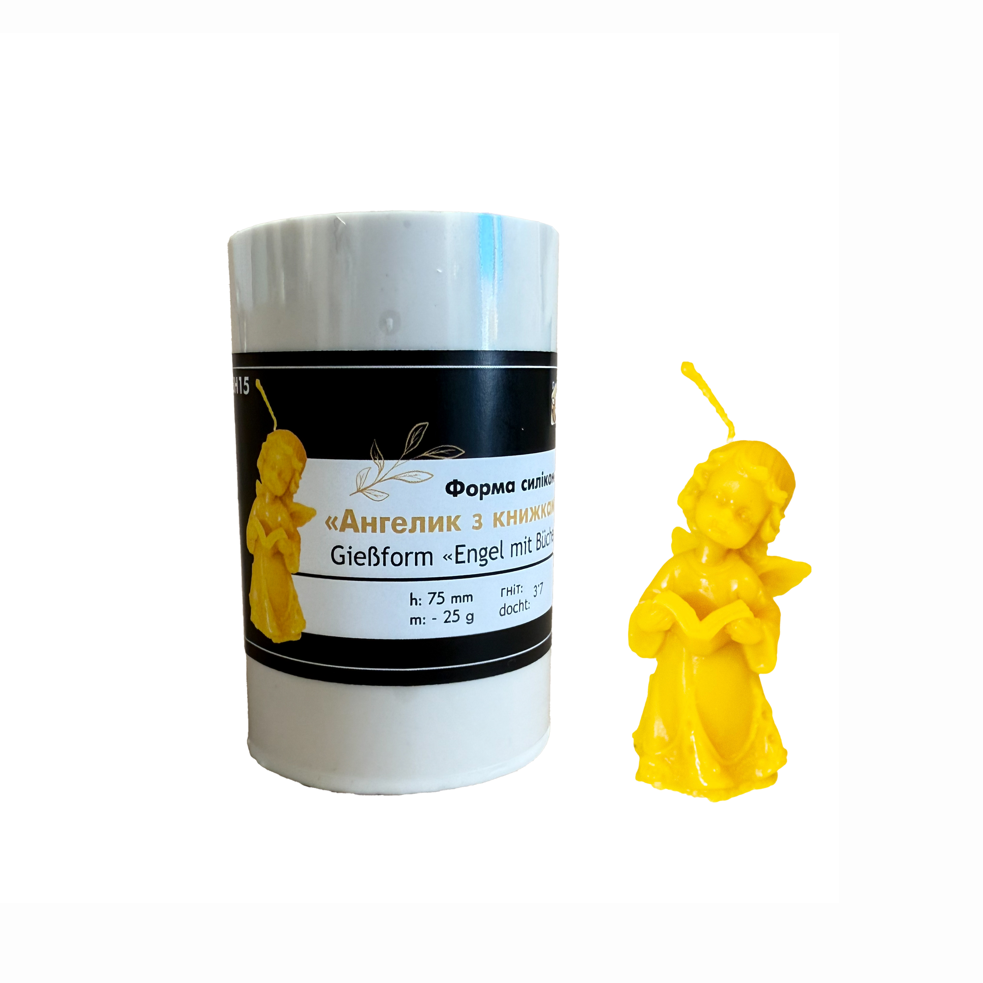 Die Silikon-Gießform „Engel mit Büchern“ eignet sich perfekt für kleine, detailreiche Kerzen. Durch den praktischen Schnitt in der Form lässt sich der Docht einfach einfädeln, und die fertige Kerze kann mühelos entnommen werden. Die hochwertige Silikonverarbeitung gewährleistet präzise Details und eine lange Lebensdauer.