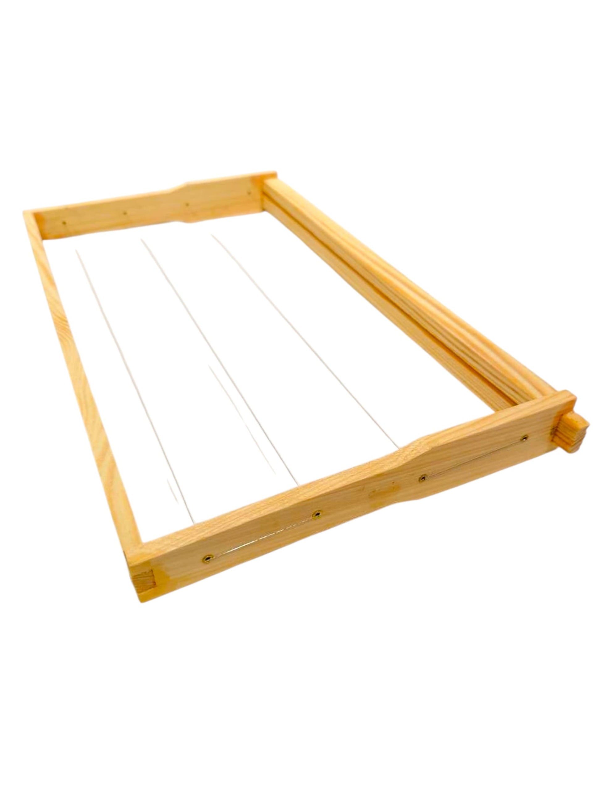 72 hochwertige DNM Rähmchen modifiziert 223 mit Hoffmann-Seitenteilen. Bereits geöst und mit rostfreiem Edelstahldraht gedrahtet – sofort einsatzbereit. Premium Qualität für stabile Waben und professionelle Imkerei.