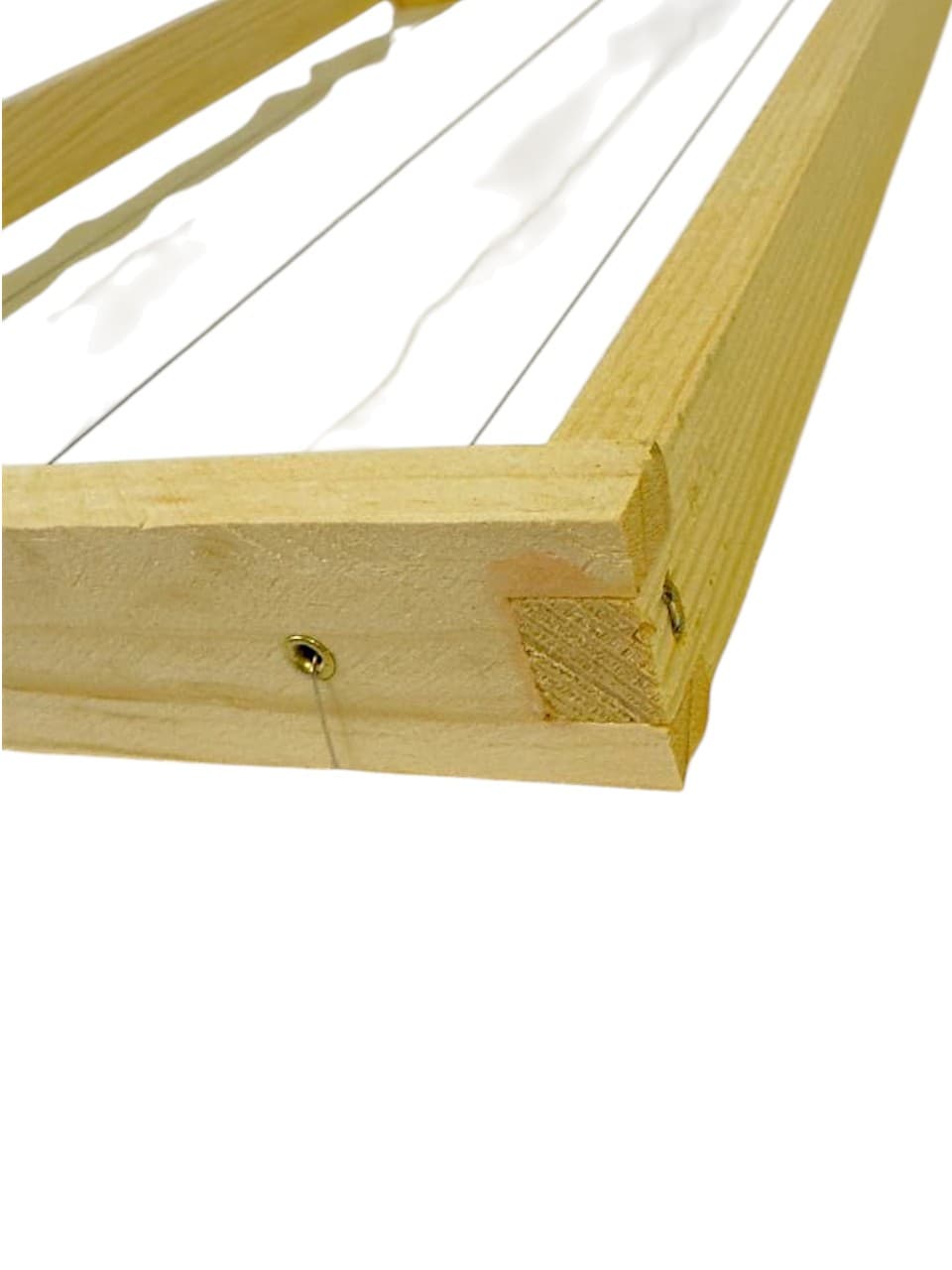 80 hochwertige Zander Hoffmann Rähmchen aus stabilem Holz. Bereits mit rostfreiem Edelstahldraht gedrahtet und geöst – sofort einsatzbereit. Premium Qualität für optimale Wabenführung und professionelle Imkerei.