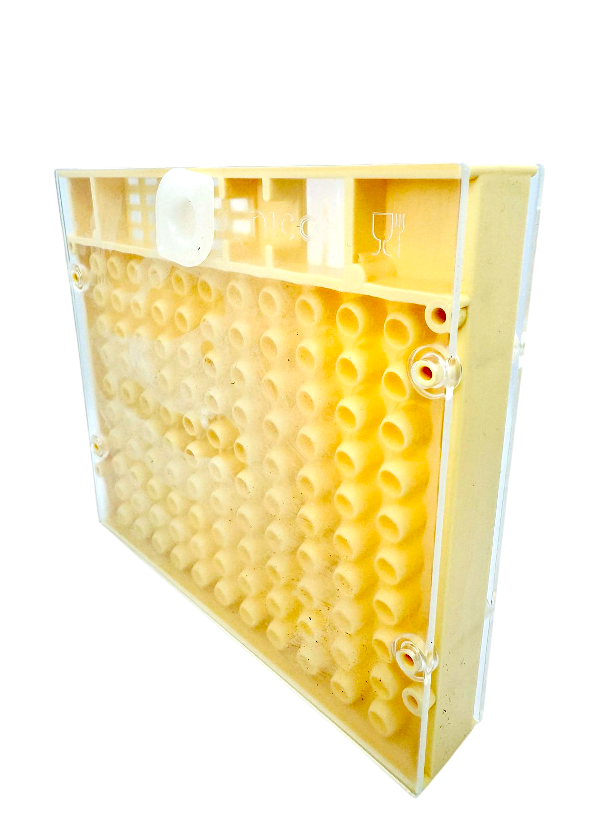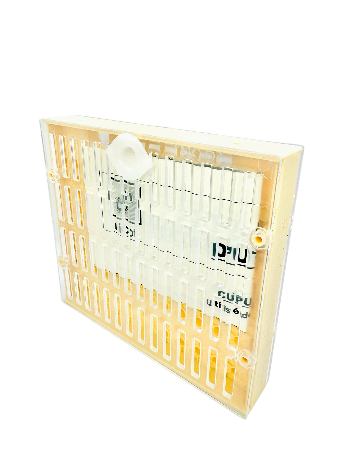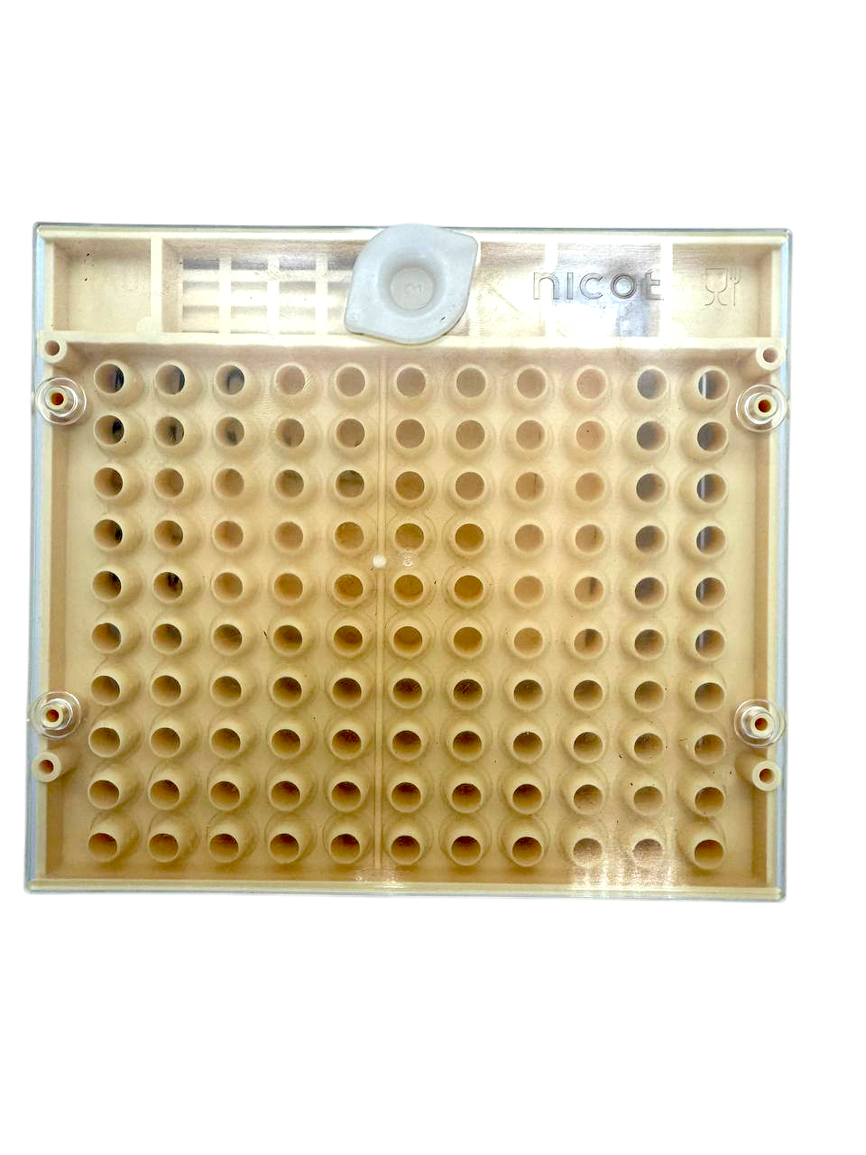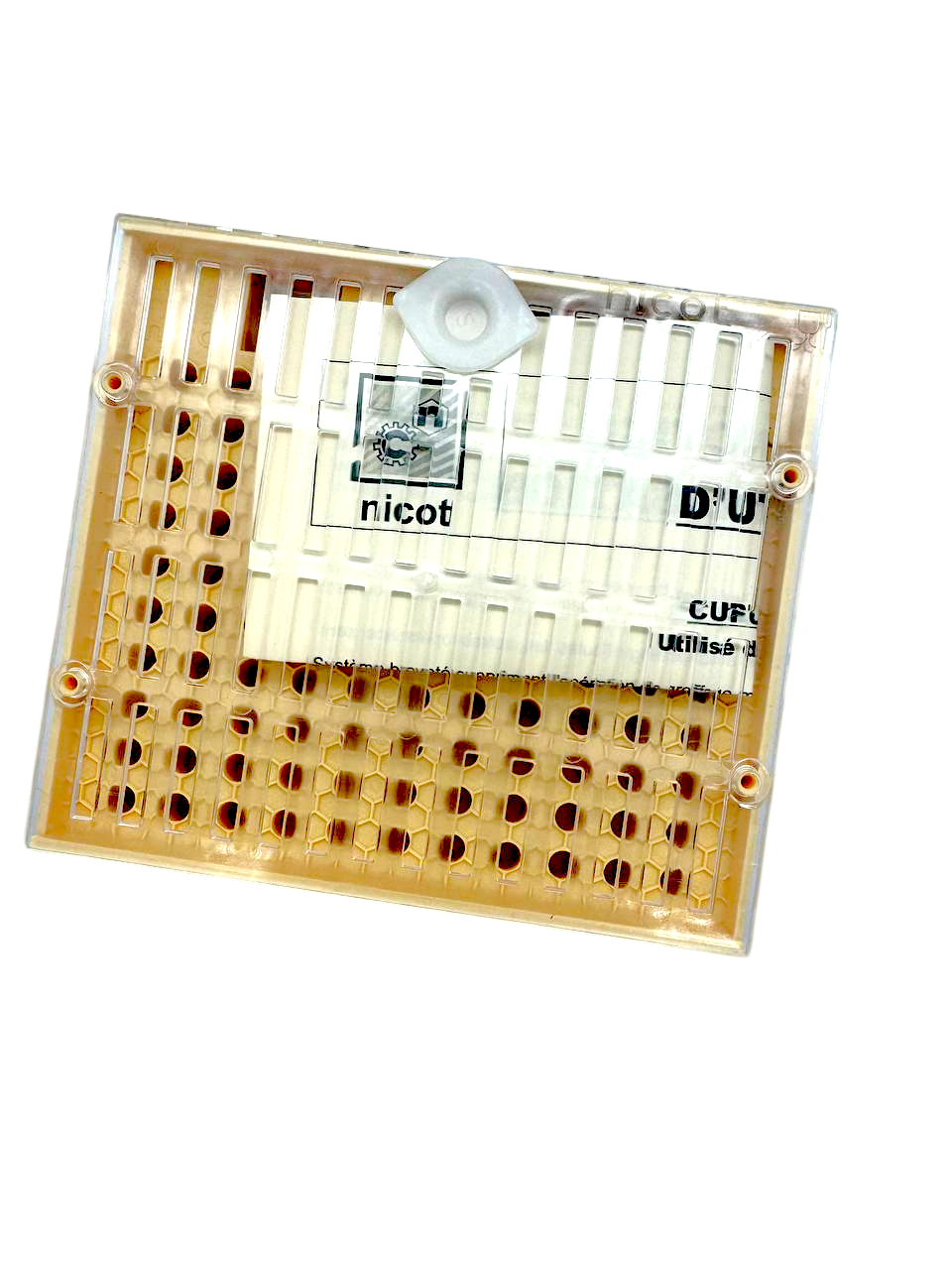 Die Original Nicot Zuchtkassette (Cupularve) ist das zentrale Element der professionellen Königinnenzucht im Nicot Königinnen-Zuchtsystem. Sie ermöglicht eine kontrollierte Eiablage ohne Umlarven, indem die Königin direkt in die Weiselnäpfchen stiftet. Ein integriertes Kunststoff-Absperrgitter hält die Königin sicher in der Kassette und sorgt für präzise, reproduzierbare Zuchtergebnisse.