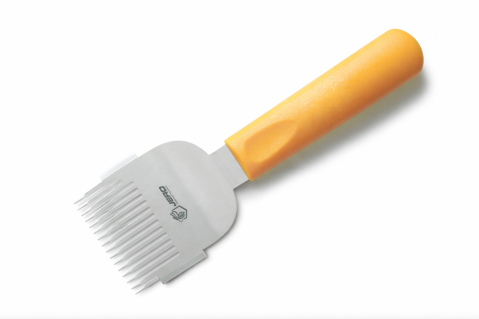 Die Entdeckelungsgabel Profi von JERO ist ein hochwertiges Werkzeug für die schonende und präzise Entdeckelung von Honigwaben. Der robuste Werkzeugkopf aus rostfreiem Edelstahl und der ergonomische Kunststoffgriff sorgen für komfortables und effizientes Arbeiten bei der Honigernte.