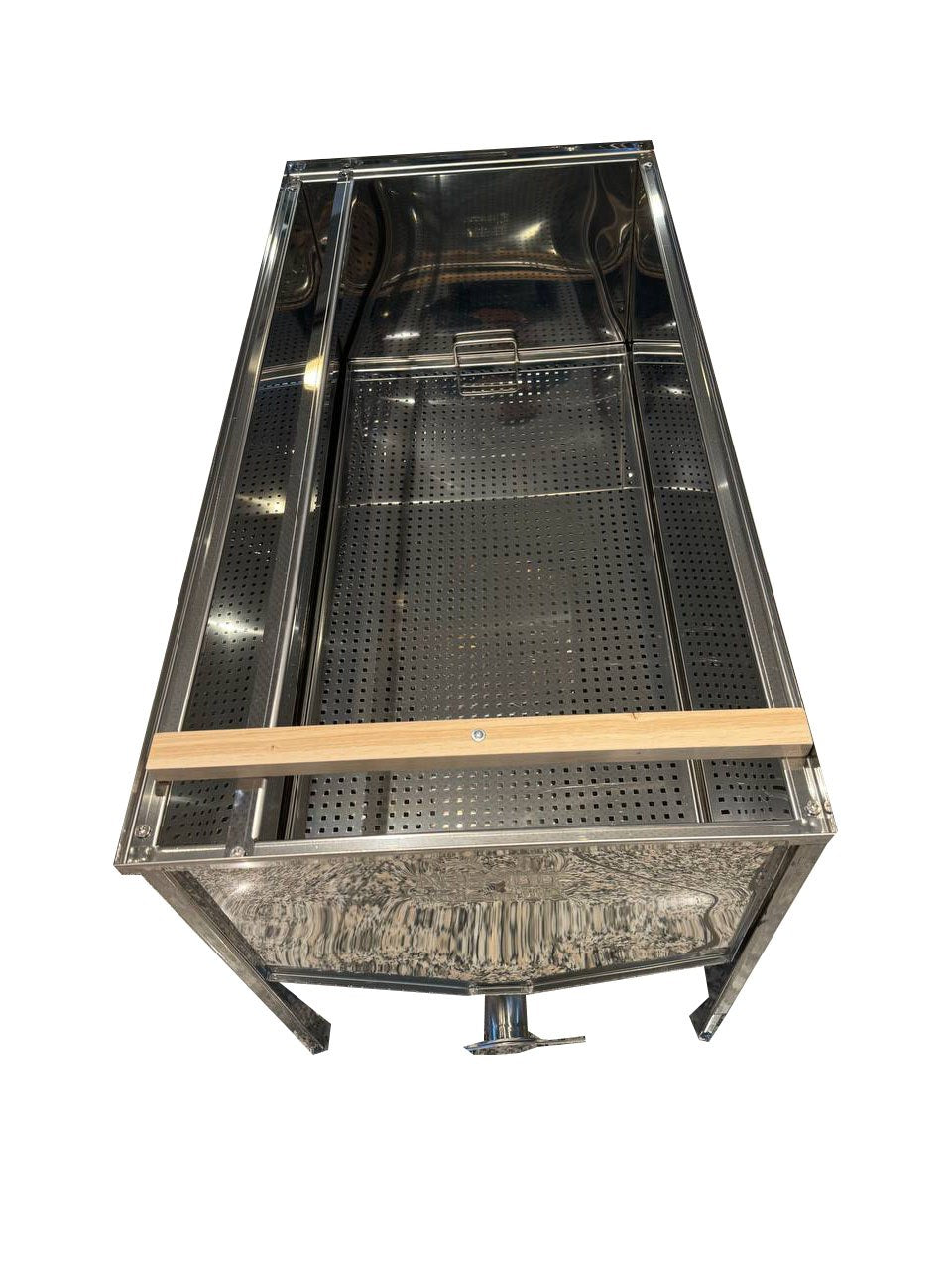 Der Entdeckelungstisch mit 1 m Arbeitslänge ist eine robuste und ergonomische Lösung für das saubere und effiziente Entdeckeln von Wabenrahmen. Dank der höhenverstellbaren Konstruktion lässt sich der Tisch optimal an die Körpergröße des Imkers und die jeweiligen Arbeitsbedingungen anpassen.