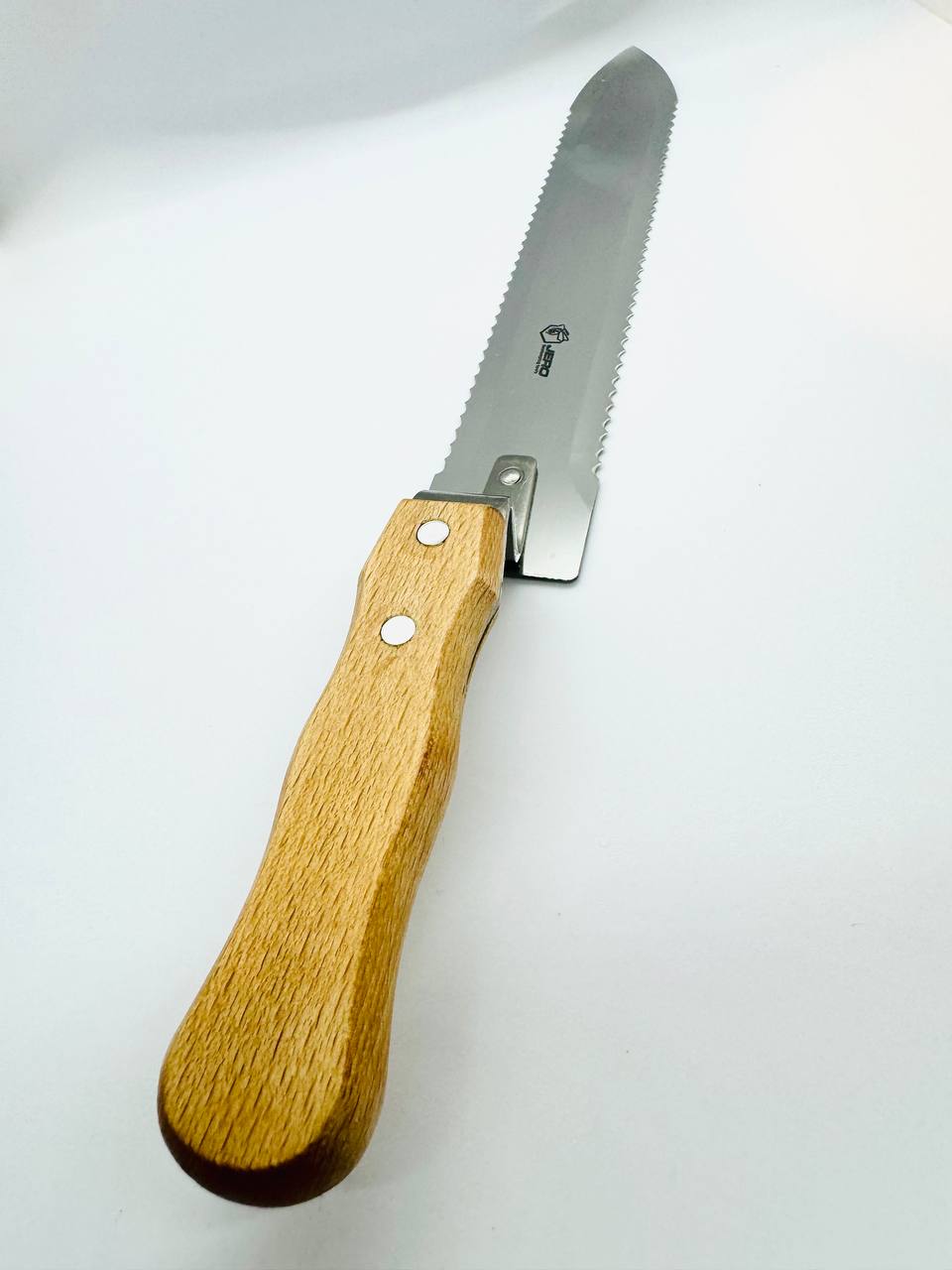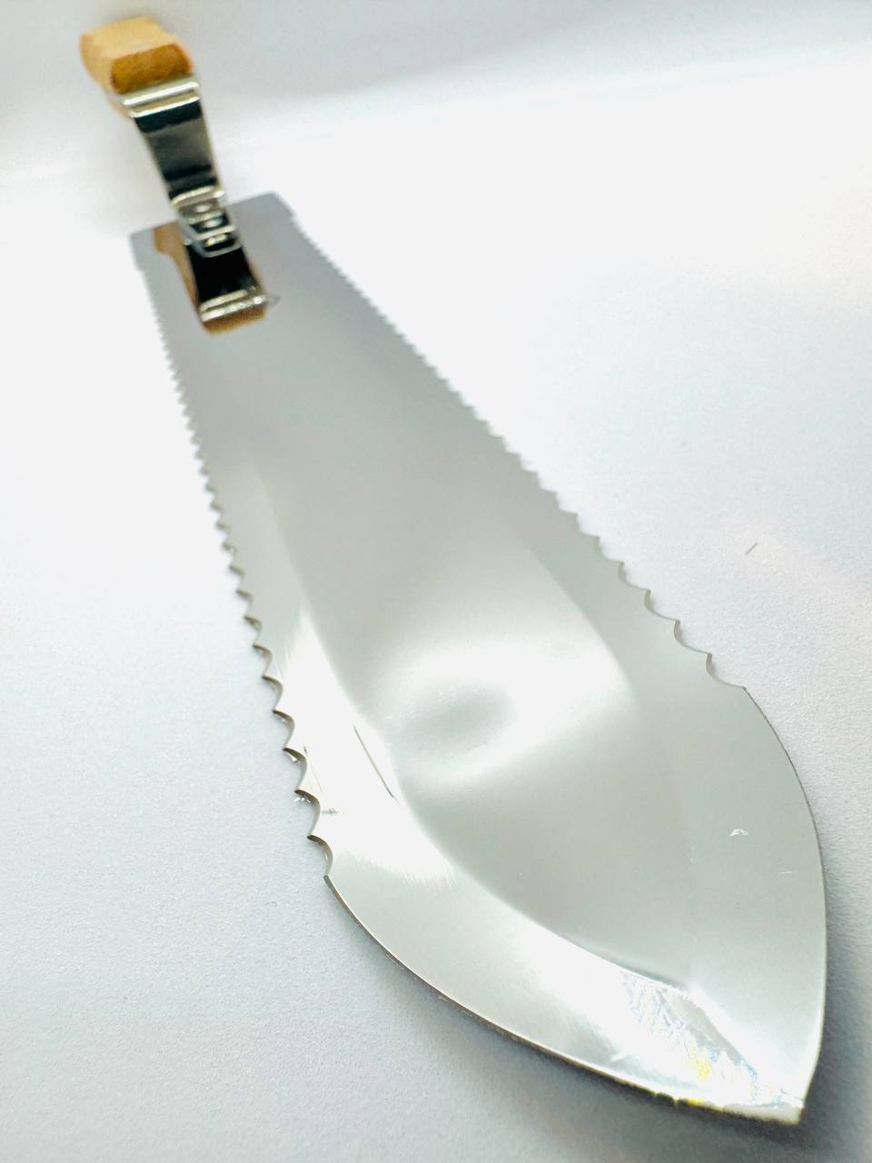Entdeckelungsmesser: 28 cm Klinge, doppelseitiger Wellenschliff, Holzgriff