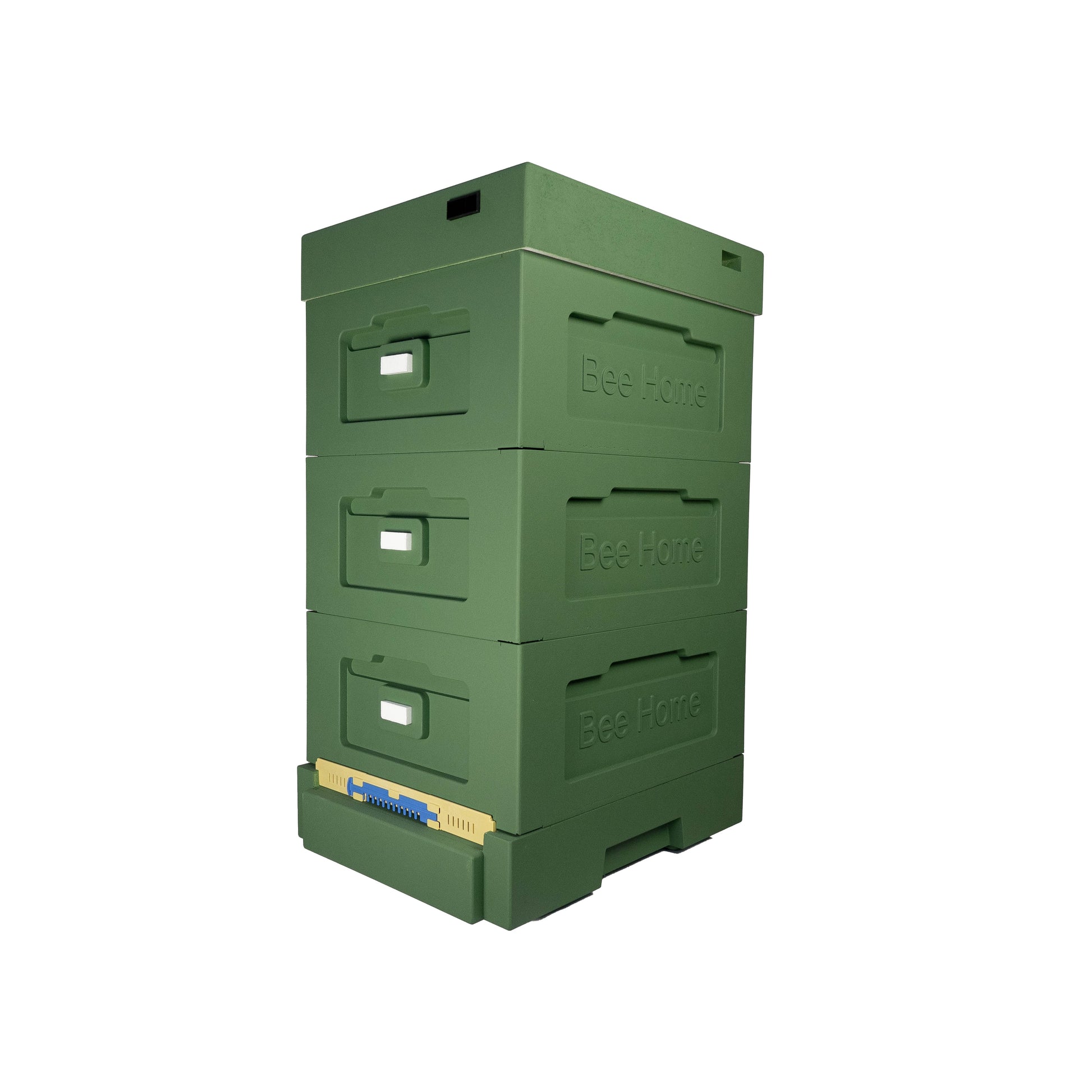 Die Bee Home Styroporbeute mit Hygieneboden (grün) im Komplettset mit 36 DNM-Hoffmann Rähmchen ist eine moderne, bienenfreundliche Lösung für Imker, die Leichtigkeit, Stabilität und Langlebigkeit schätzen. Die Beute ist für DNM-Rähmchen ausgelegt und überzeugt durch ihre robuste Bauweise aus hochwertigem Polystyrol mit sehr guten Isoliereigenschaften.