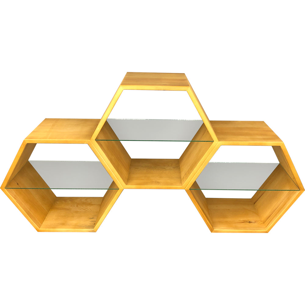 Verkaufsregal "3 Waben" klein - Stilvolle Holzvitrine für Honigprodukte