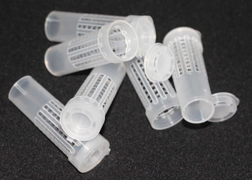Die Schutzkäfige „Bigudi“ von Nicot (weiß) sind ein bewährtes Originalzubehör für die sichere Königinnenzucht. Sie dienen dem Schutz der Weiselzellen und jungen Königinnen und ermöglichen eine kontrollierte Entwicklung bis zum Schlupf – ohne Stress für Bienen und Königin.